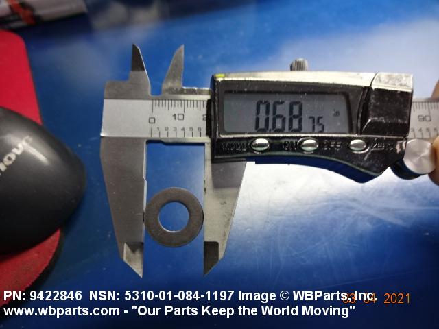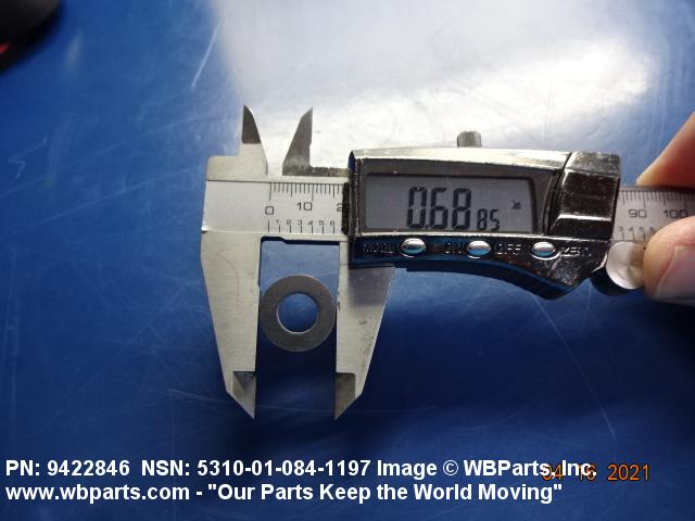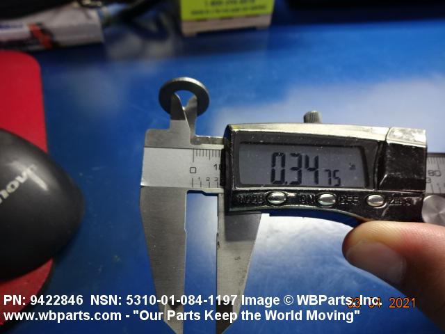 5310-01-084-1197 A washer having a centrally located hole with a solid or laminated cross-section and two flat parallel bearing surfaces. The hole must be 75 percent or less than the largest dimension and the bearing surface finish is greater than 32 microinch (0.8 micrometer). The thickness cannot exceed 25 percent of the largest outside dimension. When the largest outside dimension is less than 1/4 inch or 6mm, the thickness must be 0.006 inches (0.15mm) or greater and for items 1/4 inch (6mm) or larger, the thickness must be 0.016 inches (0.4mm) or greater. The maximum tolerance is applied to dimensions and used as a determining factor. Items with separable lamination use SHIM. For items fabricated from ceramic or electrically rated materials by specification or industry standards use INSULATOR (1), WASHER. Excludes DISK, VALVE, graphite impregnated and lubricated items.