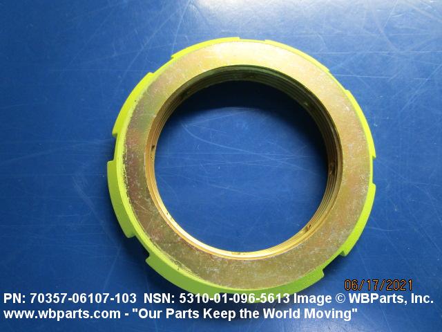 5310-01-096-5613 A nut, circular in shape, which may have wrenching facilities such as flats, holes, protrusions, slots or splines in or on the periphery or in the face opposite the bearing surface. For items having a thickness (or height) exceeding two times the outside diameter, use POST, ELECTRICAL-MECHANICAL EQUIPMENT. See also NUT (1), PLAIN, KNURLED. (When height or thickness and/or outside diameter is designated as a tolerance dimension, the maximum dimension will be used to determine compliance.