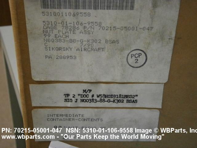 | 70215-05001-047 | 78286 | SIKORSKY AIRCRAFT CORPORATION |