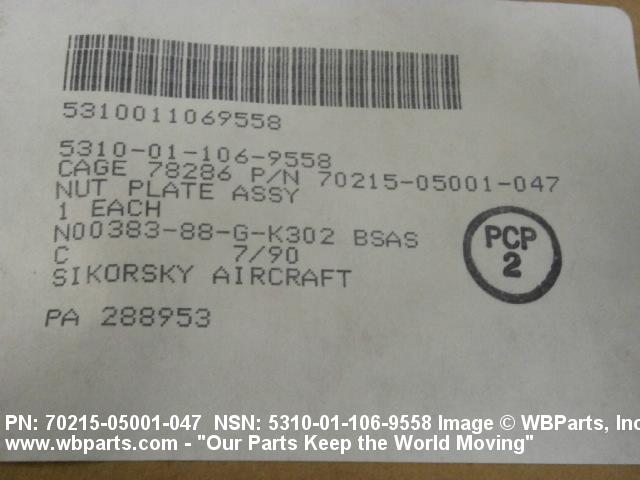 Part Alternates: 70215-05001-047, 5310-01-106-9558, 01-106-9558, 5310011069558, 7021505001047, 011069558