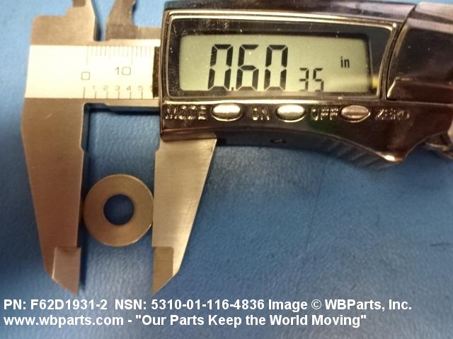 5310-01-116-4836 A washer having a centrally located hole with a solid or laminated cross-section and two flat parallel bearing surfaces. The hole must be 75 percent or less than the largest dimension and the bearing surface finish is greater than 32 microinch (0.8 micrometer). The thickness cannot exceed 25 percent of the largest outside dimension. When the largest outside dimension is less than 1/4 inch or 6mm, the thickness must be 0.006 inches (0.15mm) or greater and for items 1/4 inch (6mm) or larger, the thickness must be 0.016 inches (0.4mm) or greater. The maximum tolerance is applied to dimensions and used as a determining factor. Items with separable lamination use SHIM. For items fabricated from ceramic or electrically rated materials by specification or industry standards use INSULATOR (1), WASHER. Excludes DISK, VALVE, graphite impregnated and lubricated items.