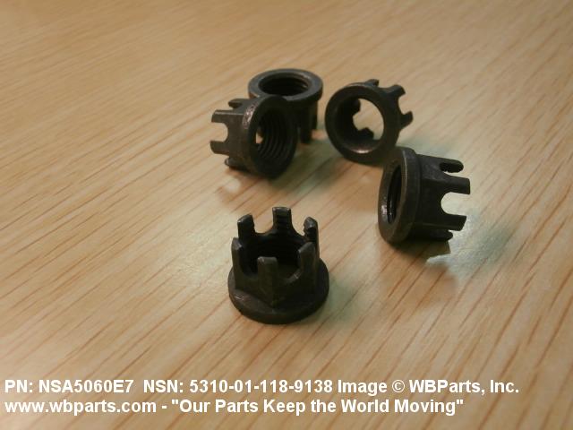 5310-01-118-9138 A nut having 6 flat sides and an integral washer which extends beyond the flats or periphery. An integral feature is incorporated for locking on the threads of a mating member.