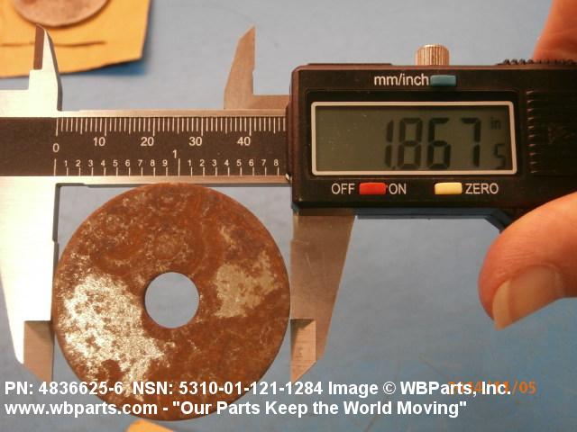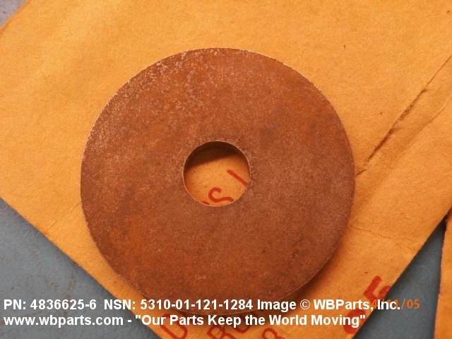 5310-01-121-1284 A washer having a centrally located hole with a solid or laminated cross-section and two flat parallel bearing surfaces. The hole must be 75 percent or less than the largest dimension and the bearing surface finish is greater than 32 microinch (0.8 micrometer). The thickness cannot exceed 25 percent of the largest outside dimension. When the largest outside dimension is less than 1/4 inch or 6mm, the thickness must be 0.006 inches (0.15mm) or greater and for items 1/4 inch (6mm) or larger, the thickness must be 0.016 inches (0.4mm) or greater. The maximum tolerance is applied to dimensions and used as a determining factor. Items with separable lamination use SHIM. For items fabricated from ceramic or electrically rated materials by specification or industry standards use INSULATOR (1), WASHER. Excludes DISK, VALVE, graphite impregnated and lubricated items.