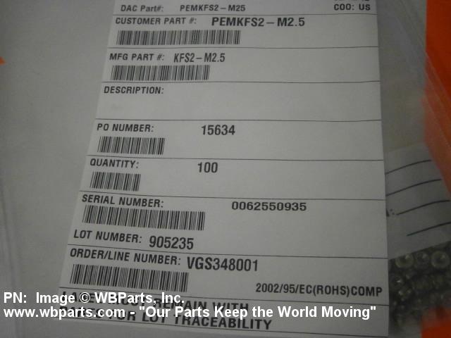 NSN 5310-01-135-2422 KFS2-M2.5, KFS2M25, 999/4/38424/004