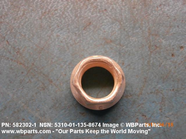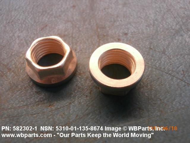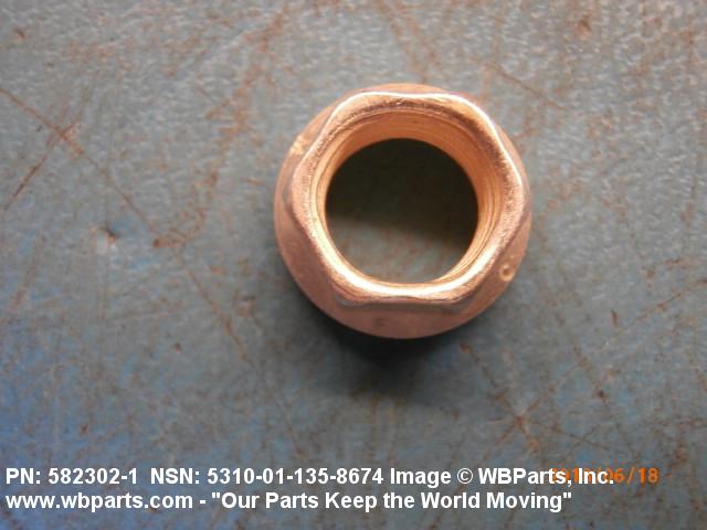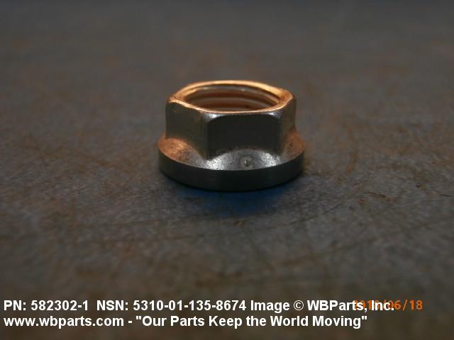 5310-01-135-8674 A nut having 6 flat sides and an integral washer which extends beyond the flats or periphery. An integral feature is incorporated for locking on the threads of a mating member.