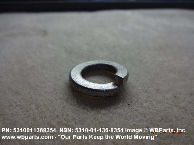5310-01-136-8354 A washer which is usually round with a centrally located hole. Its edges and two bearing surfaces are so designed that applied pressure brings into play the spring tension and/or frictional locking principle which materially resists any tendency toward turning. It may be made of one or two pieces