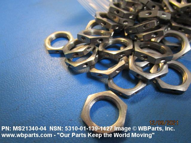 5310-01-139-1427 A nut, flat on top and bottom having 6 flat sides. For items which have internal tapered or straight (parallel) pipe threads, specific electrical conduit size designation, and which when installed, provide a method of tightening to lock the connection, see LOCKNUT, ELECTRICAL CONDUIT. See also LOCKNUT, TUBE FITTING. For items having a thickness (or height) exceeding two times the width across the flats, use POST, ELECTRICAL-MECHANICAL EQUIPMENT. (When height or thickness and/or width across the flats is designated as a tolerance dimension, the maximum dimension will be used to determine compliance.