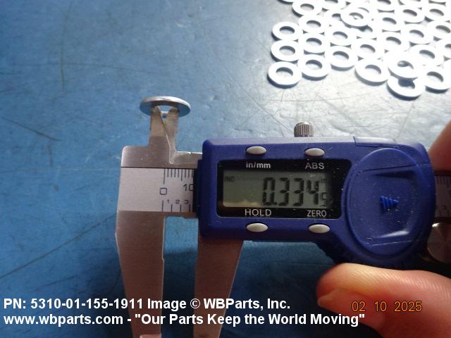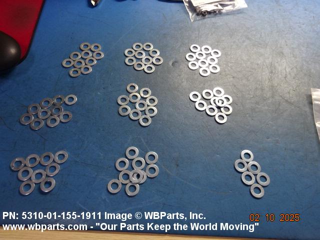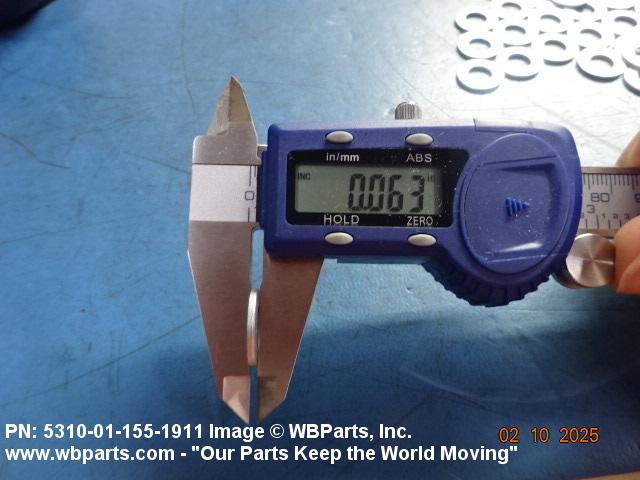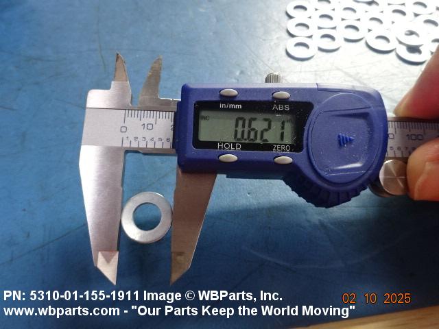 5310-01-155-1911 A washer having a centrally located hole with a solid or laminated cross-section and two flat parallel bearing surfaces. The hole must be 75 percent or less than the largest dimension and the bearing surface finish is greater than 32 microinch (0.8 micrometer). The thickness cannot exceed 25 percent of the largest outside dimension. When the largest outside dimension is less than 1/4 inch or 6mm, the thickness must be 0.006 inches (0.15mm) or greater and for items 1/4 inch (6mm) or larger, the thickness must be 0.016 inches (0.4mm) or greater. The maximum tolerance is applied to dimensions and used as a determining factor. Items with separable lamination use SHIM. For items fabricated from ceramic or electrically rated materials by specification or industry standards use INSULATOR (1), WASHER. Excludes DISK, VALVE, graphite impregnated and lubricated items.