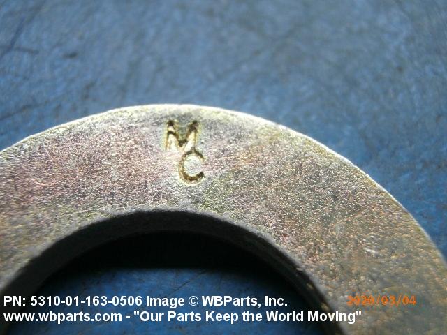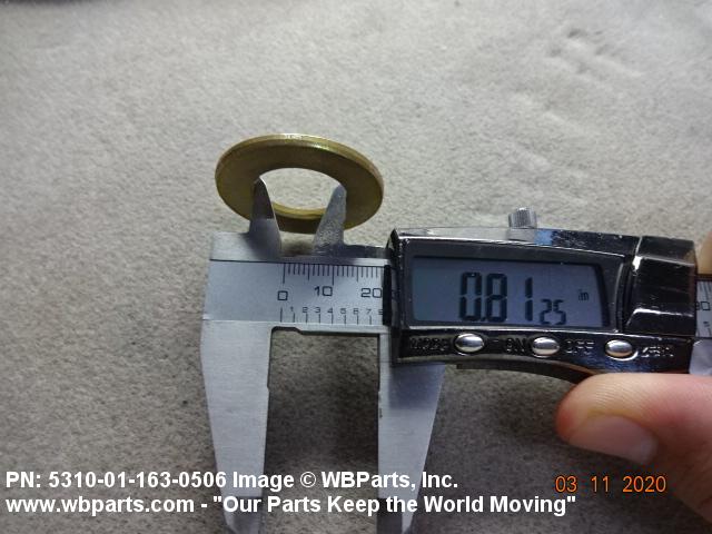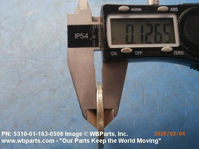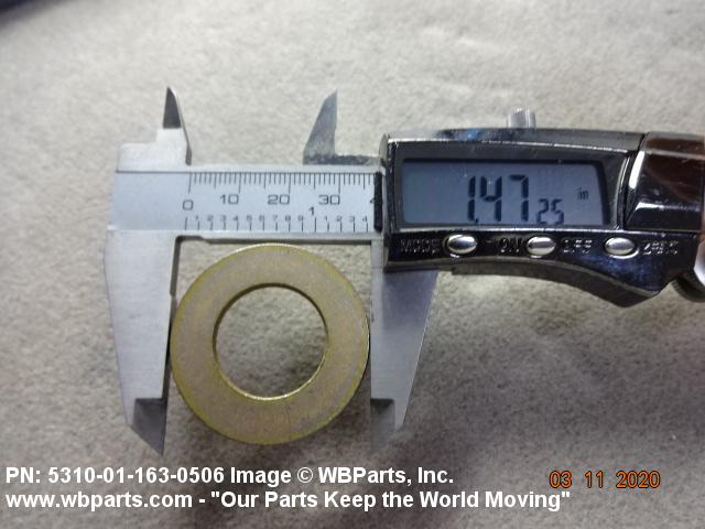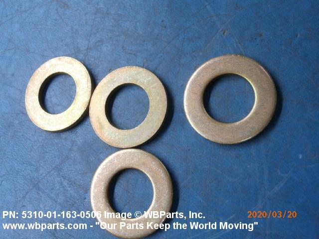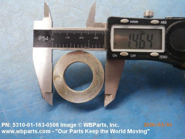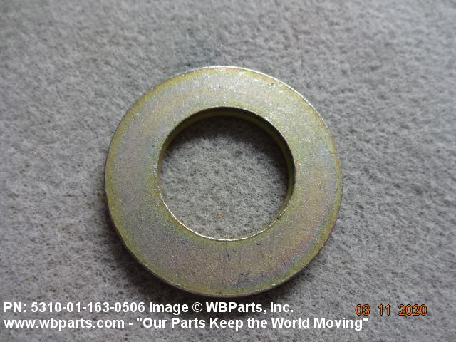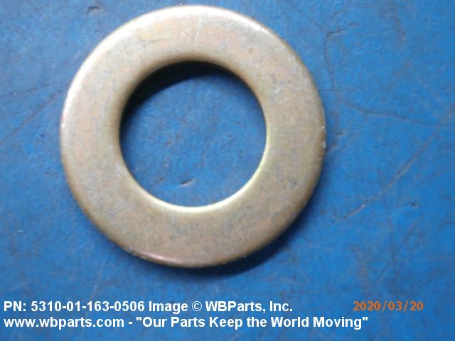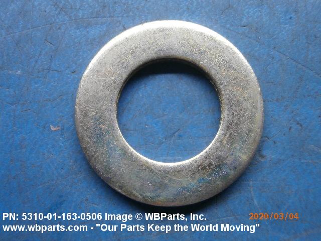5310-01-163-0506 A washer having a centrally located hole with a solid or laminated cross-section and two flat parallel bearing surfaces. The hole must be 75 percent or less than the largest dimension and the bearing surface finish is greater than 32 microinch (0.8 micrometer). The thickness cannot exceed 25 percent of the largest outside dimension. When the largest outside dimension is less than 1/4 inch or 6mm, the thickness must be 0.006 inches (0.15mm) or greater and for items 1/4 inch (6mm) or larger, the thickness must be 0.016 inches (0.4mm) or greater. The maximum tolerance is applied to dimensions and used as a determining factor. Items with separable lamination use SHIM. For items fabricated from ceramic or electrically rated materials by specification or industry standards use INSULATOR (1), WASHER. Excludes DISK, VALVE, graphite impregnated and lubricated items.