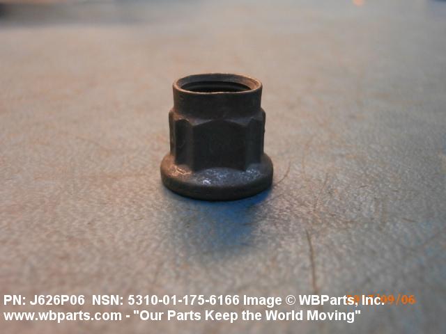 5310-01-175-6166 A nut having 12 drive points, 24 sides, and an integral washer which extends beyond the points or periphery. An integral feature is incorporated for locking on the threads of a mating member.