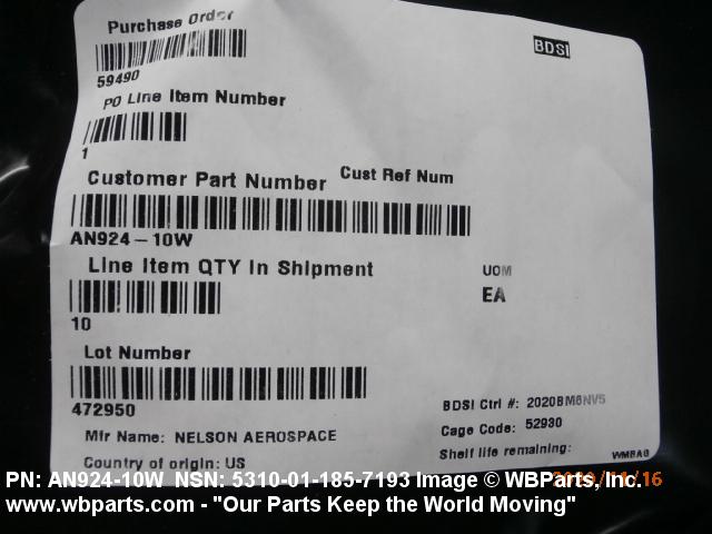 Part Alternates: AN92410W, AN924-10W, AS4841, AS5178, AS5178W10, 5310-01-185-7193, 01-185-7193, 5310011857193, 011857193