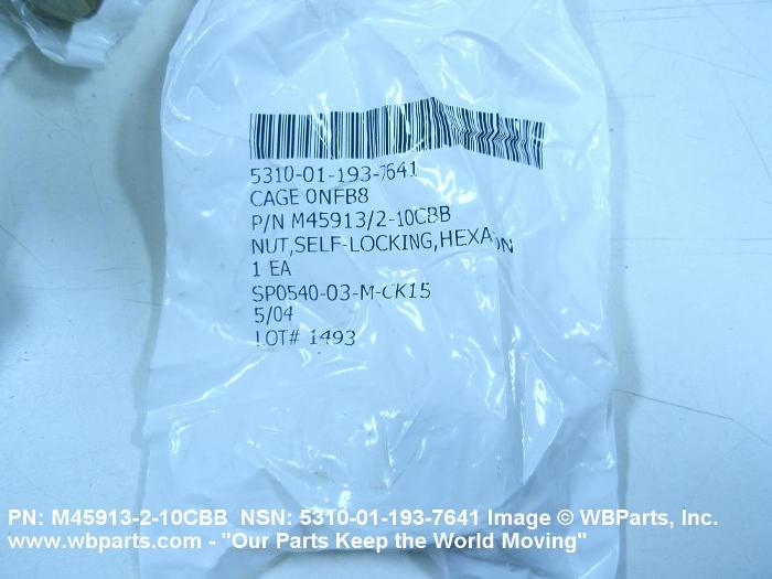 5310-01-193-7641 A nut having a flat bottom and 6 sides. An integral feature is incorporated for locking on the threads of a mating member. Excludes NUT (1), SELF-LOCKING, CAP.