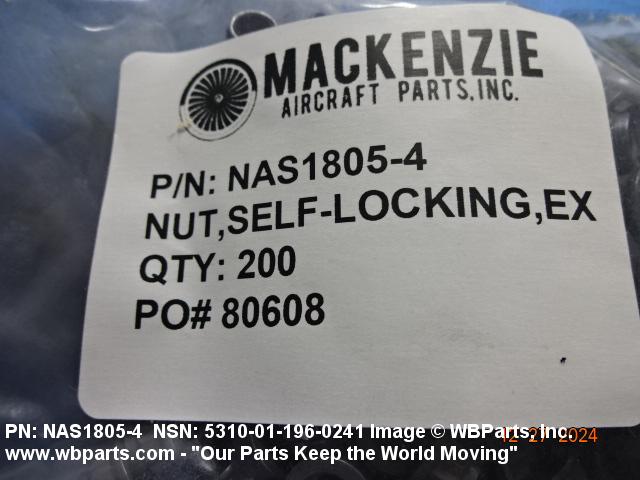 NSN 5310-01-196-0241 NAS18054, NAS1805-4, 01-196-0241