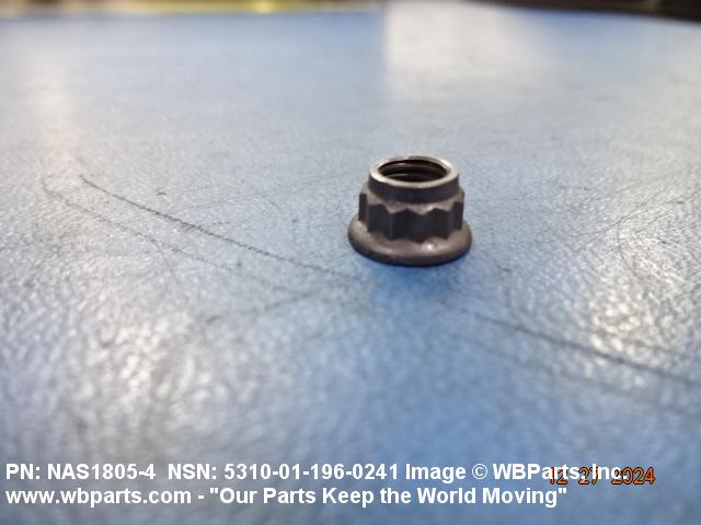 5310-01-196-0241 A nut having 12 drive points, 24 sides, and an integral washer which extends beyond the points or periphery. An integral feature is incorporated for locking on the threads of a mating member.