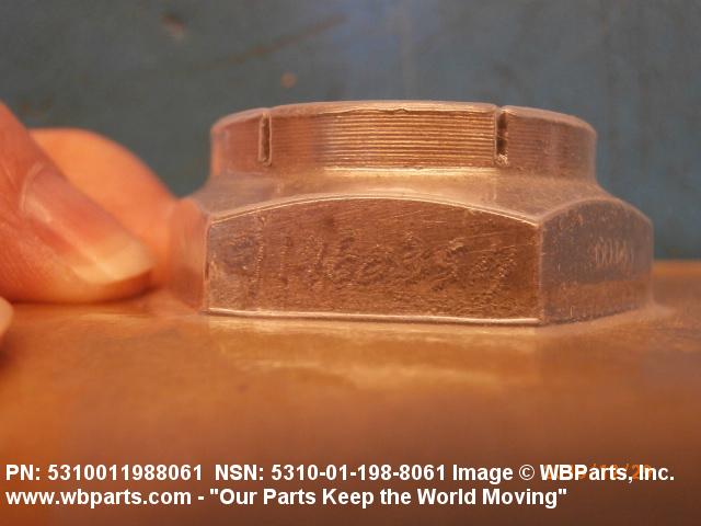 5310-01-198-8061 An item internally threaded from one end, and completely inclosed on the opposite end. The outer periphery parallel to the threaded axis may be square, cylindrical, hexagonal, octagonal, or dodecagonal and taper to a cone or dome shape on the closed end. For like items which are stamped or formed from sheet stock, see NUT (1), STAMPED. For similar items which are flat on top and bottom see NUT (1), SLEEVE or POST, ELECTRICAL-MECHANICAL EQUIPMENT.