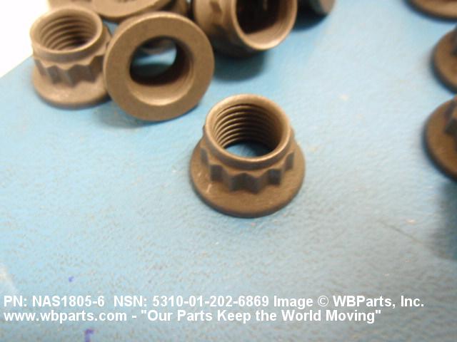 5310-01-202-6869 A nut having 12 drive points, 24 sides, and an integral washer which extends beyond the points or periphery. An integral feature is incorporated for locking on the threads of a mating member.