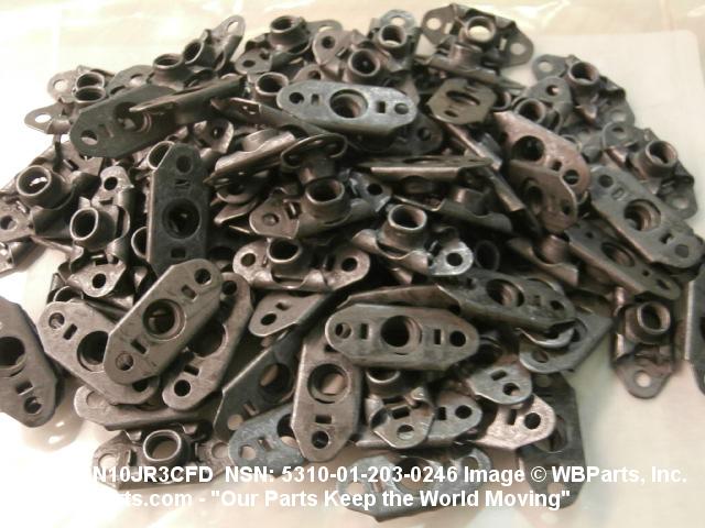 5310-01-203-0246 A nut with a flanged base of varied shapes which may be plain or mounted by rivets, bolts, welding or integral prongs. An integral feature is incorporated for locking on the threads of a mating member.