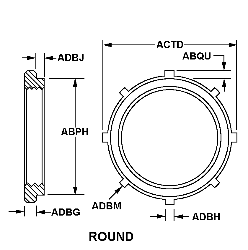 5310-01-209-7251 A nut, circular in shape, which may have wrenching facilities such as flats, holes, protrusions, slots or splines in or on the periphery or in the face opposite the bearing surface. For items having a thickness (or height) exceeding two times the outside diameter, use POST, ELECTRICAL-MECHANICAL EQUIPMENT. See also NUT (1), PLAIN, KNURLED. (When height or thickness and/or outside diameter is designated as a tolerance dimension, the maximum dimension will be used to determine compliance.