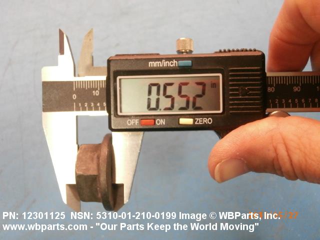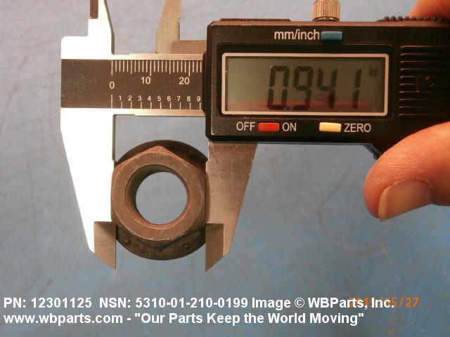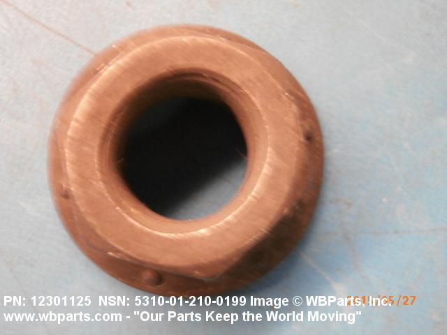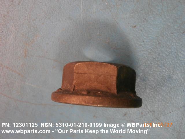 5310-01-210-0199 A nut having 6 flat sides and an integral washer which extends beyond the flats or periphery. An integral feature is incorporated for locking on the threads of a mating member.