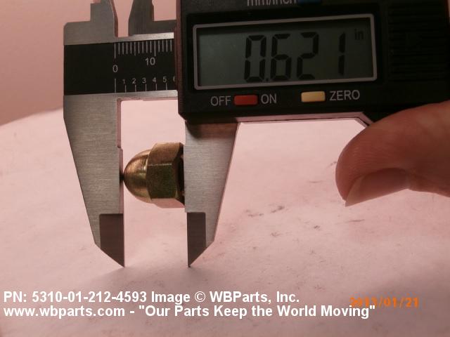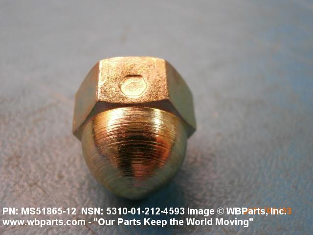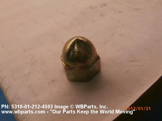 5310-01-212-4593 A nut internally threaded from one end, and completely enclosed on the opposite end. The outer periphery parallel to the threaded axis may be square, cylindrical, hexagonal, octagonal, dodecagonal or the like and taper to a cone or dome shape on the closed end. An integral feature is incorporated for locking on the threads of a mating memeber. Excludes NUT (1), STAMPED.