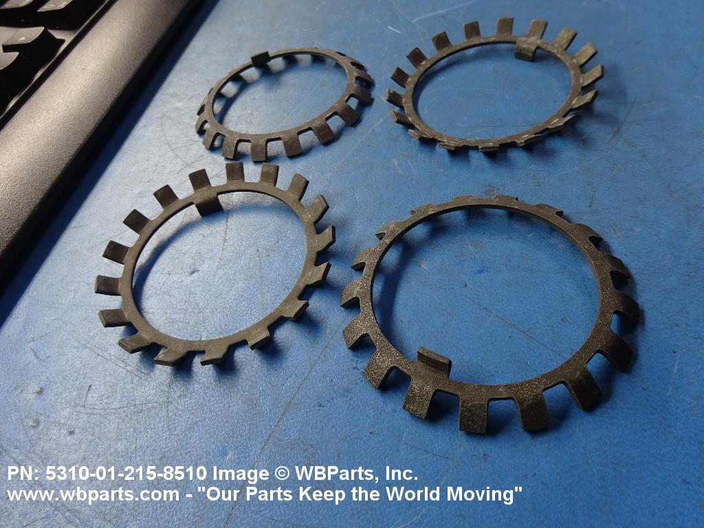 5310-01-215-8510 A washer of nonresilient material usually having two parallel bearing surfaces. The outside and/or inside edges have one or more protuberances. The ends and/or edges may be prebent at any angle or the protuberances may be prebent at any angle to the bearing surfaces. The keys or lugs may be fitted into keyways in adjacent material or they may be bent over after application to hold or lock one or more items in place. Excludes thrust type washer.