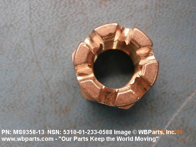 5310-01-233-0588 A nut having 6 flat sides, flat on the bottom and having a slotted cylindrical or dome shaped upper portion. It is designed to provide positive locking when used with a solid or split (cotter) pin. Excludes NUT (1), PLAIN, SLOTTED, HEXAGON.