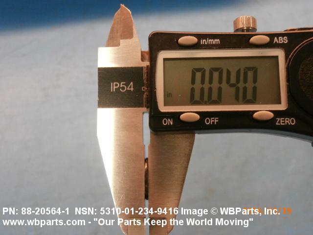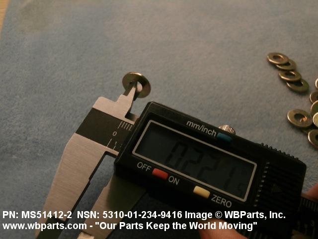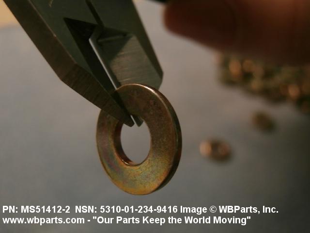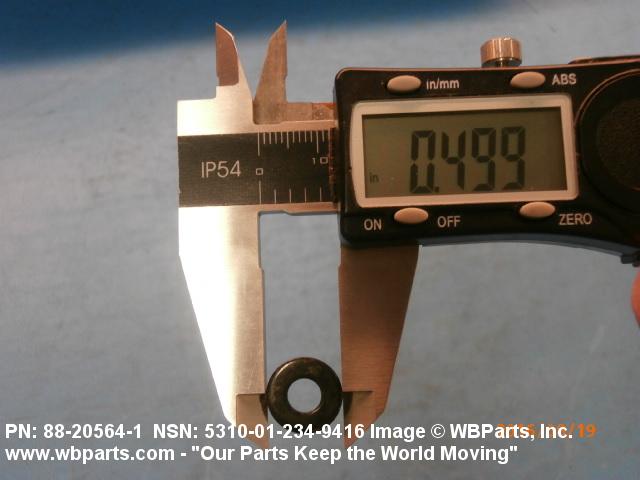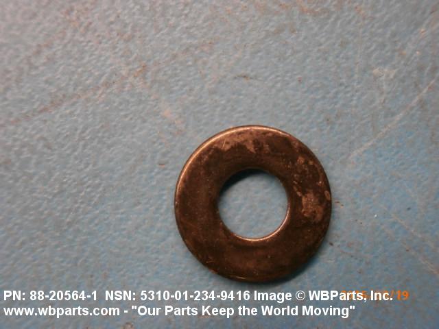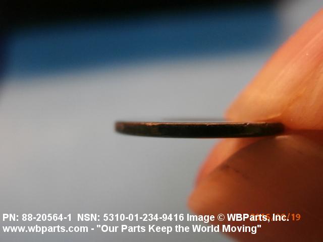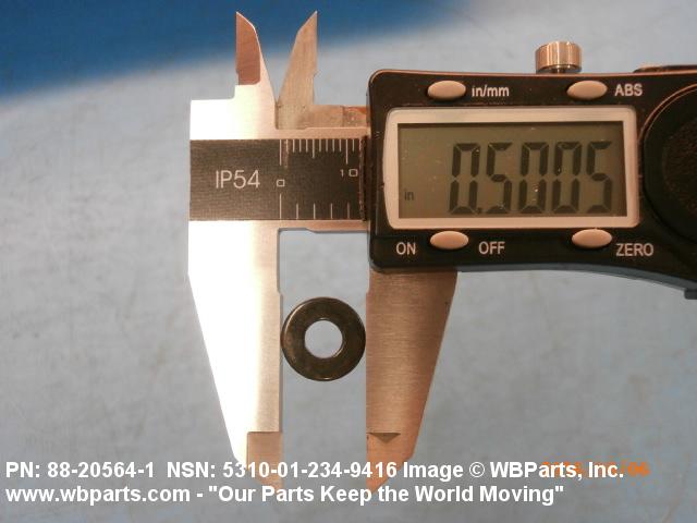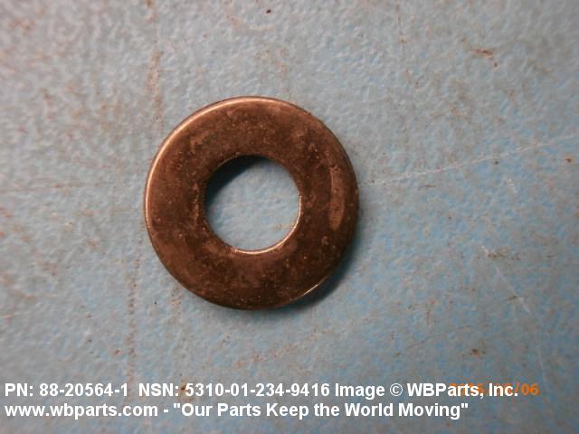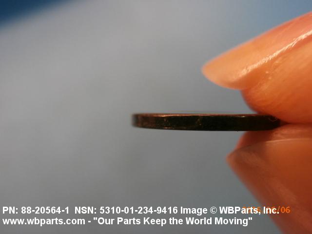 5310-01-234-9416 A washer having a centrally located hole with a solid or laminated cross-section and two flat parallel bearing surfaces. The hole must be 75 percent or less than the largest dimension and the bearing surface finish is greater than 32 microinch (0.8 micrometer). The thickness cannot exceed 25 percent of the largest outside dimension. When the largest outside dimension is less than 1/4 inch or 6mm, the thickness must be 0.006 inches (0.15mm) or greater and for items 1/4 inch (6mm) or larger, the thickness must be 0.016 inches (0.4mm) or greater. The maximum tolerance is applied to dimensions and used as a determining factor. Items with separable lamination use SHIM. For items fabricated from ceramic or electrically rated materials by specification or industry standards use INSULATOR (1), WASHER. Excludes DISK, VALVE, graphite impregnated and lubricated items.
