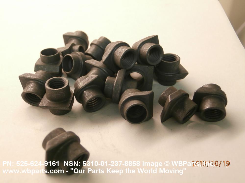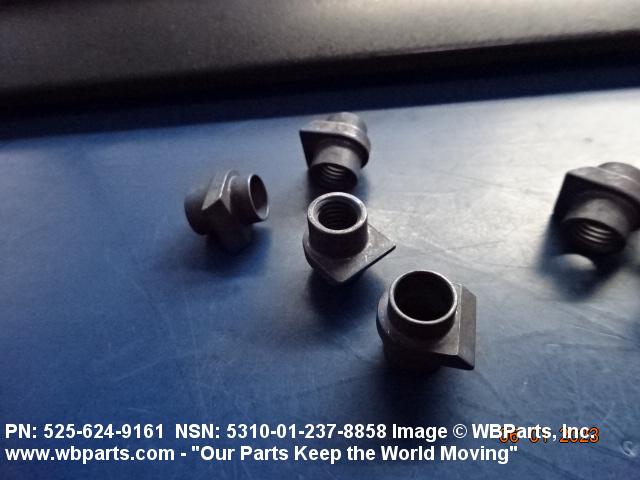 5310-01-237-8858 A nut having ears or lugs designed to hold it in position after its installation in a specially designed channel. An integral feature is incorporated for locking on the threads of a mating member.