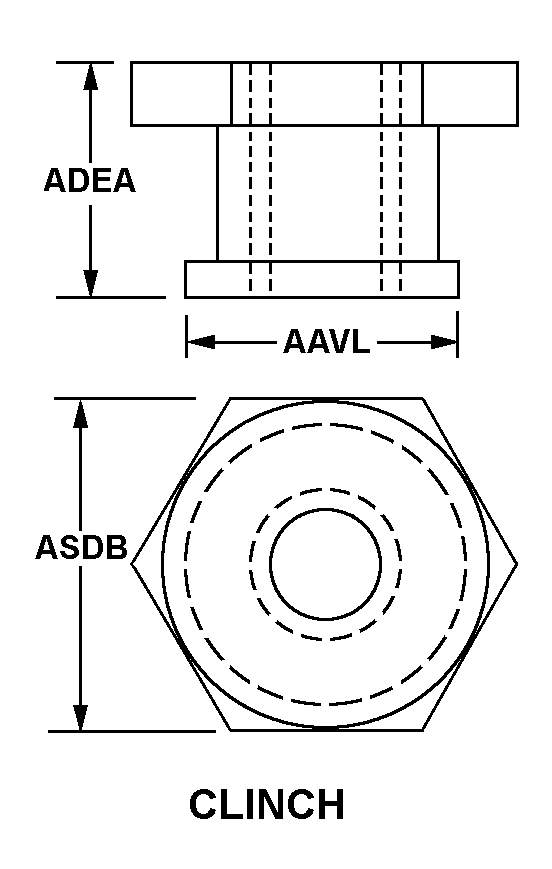 5310-01-240-5966 A nut having a sleeve portion on its under side, which can be crimped or clinched to hold the item in place when inserted in a hole.