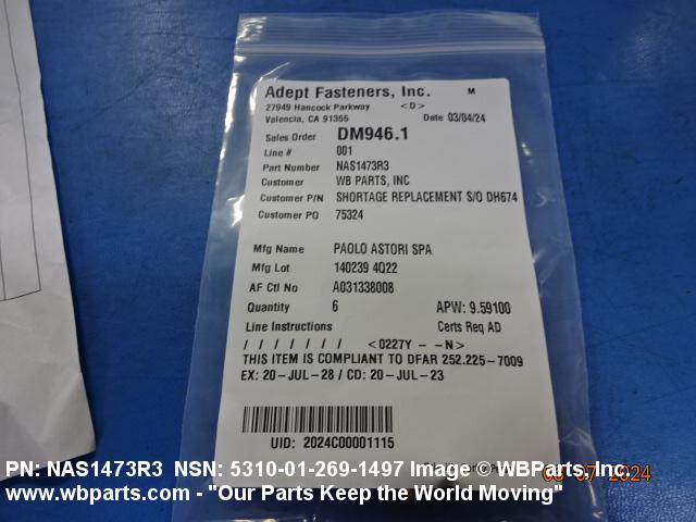 NSN 5310-01-269-1497 NAS1473R3, 01-269-1497, 012691497