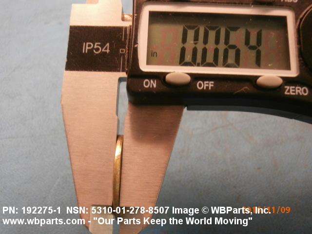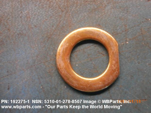 5310-01-278-8507 A washer having a centrally located hole with a solid or laminated cross-section and two flat parallel bearing surfaces. The hole must be 75 percent or less than the largest dimension and the bearing surface finish is greater than 32 microinch (0.8 micrometer). The thickness cannot exceed 25 percent of the largest outside dimension. When the largest outside dimension is less than 1/4 inch or 6mm, the thickness must be 0.006 inches (0.15mm) or greater and for items 1/4 inch (6mm) or larger, the thickness must be 0.016 inches (0.4mm) or greater. The maximum tolerance is applied to dimensions and used as a determining factor. Items with separable lamination use SHIM. For items fabricated from ceramic or electrically rated materials by specification or industry standards use INSULATOR (1), WASHER. Excludes DISK, VALVE, graphite impregnated and lubricated items.
