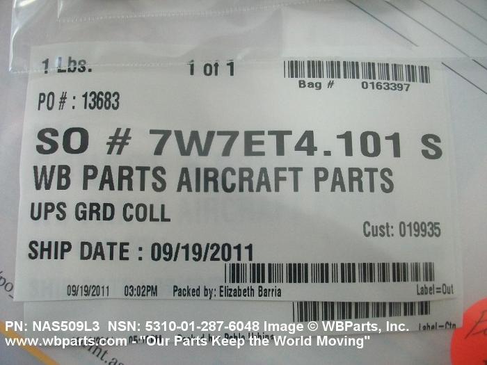 NSN 5310-01-287-6048 NAS509L3, 01-287-6048, 012876048