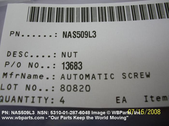 Part Alternates: NAS509L3, 5310-01-287-6048, 01-287-6048, 5310012876048, 012876048