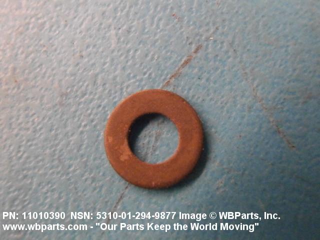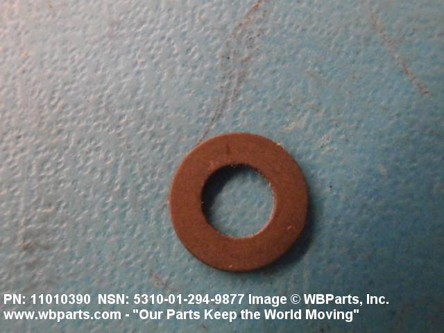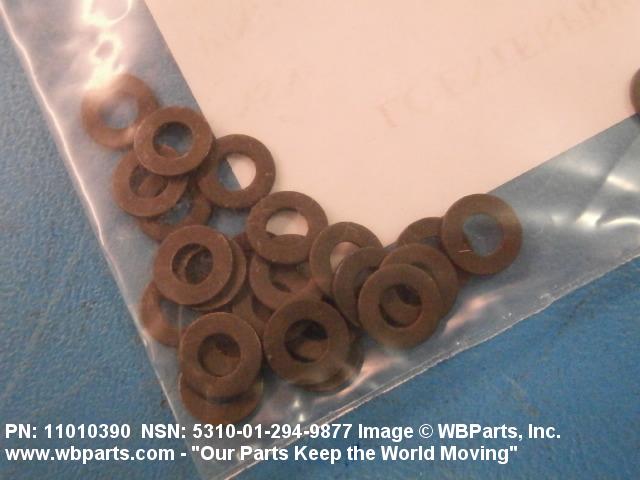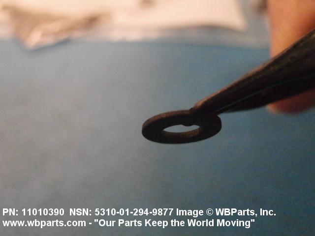 5310-01-294-9877 A washer having a centrally located hole with a solid or laminated cross-section and two flat parallel bearing surfaces. The hole must be 75 percent or less than the largest dimension and the bearing surface finish is greater than 32 microinch (0.8 micrometer). The thickness cannot exceed 25 percent of the largest outside dimension. When the largest outside dimension is less than 1/4 inch or 6mm, the thickness must be 0.006 inches (0.15mm) or greater and for items 1/4 inch (6mm) or larger, the thickness must be 0.016 inches (0.4mm) or greater. The maximum tolerance is applied to dimensions and used as a determining factor. Items with separable lamination use SHIM. For items fabricated from ceramic or electrically rated materials by specification or industry standards use INSULATOR (1), WASHER. Excludes DISK, VALVE, graphite impregnated and lubricated items.