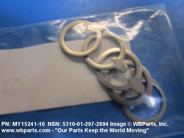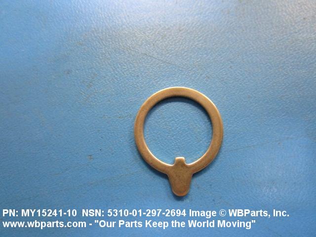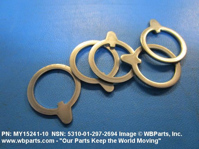 5310-01-297-2694 A washer which is usually round with a centrally located hole. Its edges and two bearing surfaces are so designed that applied pressure brings into play the spring tension and/or frictional locking principle which materially resists any tendency toward turning. It may be made of one or two pieces