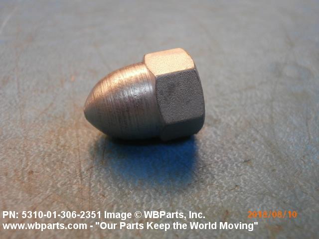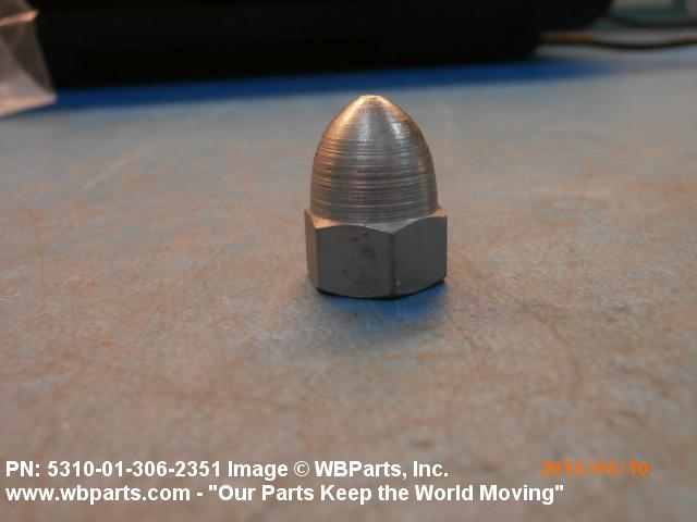 5310-01-306-2351 An item internally threaded from one end, and completely inclosed on the opposite end. The outer periphery parallel to the threaded axis may be square, cylindrical, hexagonal, octagonal, or dodecagonal and taper to a cone or dome shape on the closed end. For like items which are stamped or formed from sheet stock, see NUT (1), STAMPED. For similar items which are flat on top and bottom see NUT (1), SLEEVE or POST, ELECTRICAL-MECHANICAL EQUIPMENT.