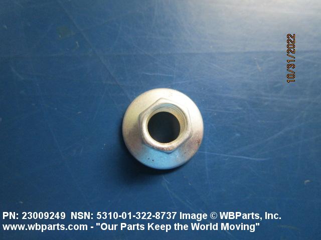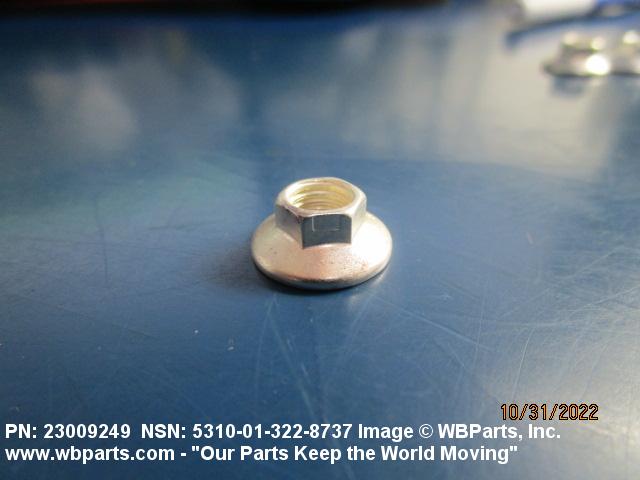5310-01-322-8737 A nut having 6 flat sides and an integral washer which extends beyond the flats or periphery. An integral feature is incorporated for locking on the threads of a mating member.