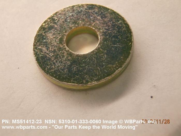 5310-01-333-0060 A washer having a centrally located hole with a solid or laminated cross-section and two flat parallel bearing surfaces. The hole must be 75 percent or less than the largest dimension and the bearing surface finish is greater than 32 microinch (0.8 micrometer). The thickness cannot exceed 25 percent of the largest outside dimension. When the largest outside dimension is less than 1/4 inch or 6mm, the thickness must be 0.006 inches (0.15mm) or greater and for items 1/4 inch (6mm) or larger, the thickness must be 0.016 inches (0.4mm) or greater. The maximum tolerance is applied to dimensions and used as a determining factor. Items with separable lamination use SHIM. For items fabricated from ceramic or electrically rated materials by specification or industry standards use INSULATOR (1), WASHER. Excludes DISK, VALVE, graphite impregnated and lubricated items.