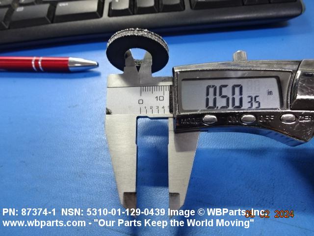 5310-01-339-9064 A washer having a centrally located hole with a solid or laminated cross-section and two flat parallel bearing surfaces. The hole must be 75 percent or less than the largest dimension and the bearing surface finish is greater than 32 microinch (0.8 micrometer). The thickness cannot exceed 25 percent of the largest outside dimension. When the largest outside dimension is less than 1/4 inch or 6mm, the thickness must be 0.006 inches (0.15mm) or greater and for items 1/4 inch (6mm) or larger, the thickness must be 0.016 inches (0.4mm) or greater. The maximum tolerance is applied to dimensions and used as a determining factor. Items with separable lamination use SHIM. For items fabricated from ceramic or electrically rated materials by specification or industry standards use INSULATOR (1), WASHER. Excludes DISK, VALVE, graphite impregnated and lubricated items.