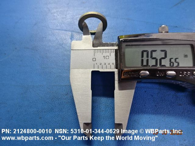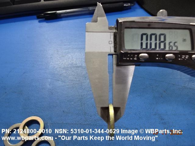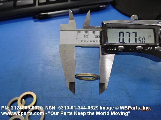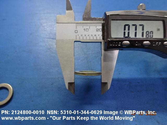 5310-01-344-0629 A washer having a centrally located hole with a solid or laminated cross-section and two flat parallel bearing surfaces. The hole must be 75 percent or less than the largest dimension and the bearing surface finish is greater than 32 microinch (0.8 micrometer). The thickness cannot exceed 25 percent of the largest outside dimension. When the largest outside dimension is less than 1/4 inch or 6mm, the thickness must be 0.006 inches (0.15mm) or greater and for items 1/4 inch (6mm) or larger, the thickness must be 0.016 inches (0.4mm) or greater. The maximum tolerance is applied to dimensions and used as a determining factor. Items with separable lamination use SHIM. For items fabricated from ceramic or electrically rated materials by specification or industry standards use INSULATOR (1), WASHER. Excludes DISK, VALVE, graphite impregnated and lubricated items.