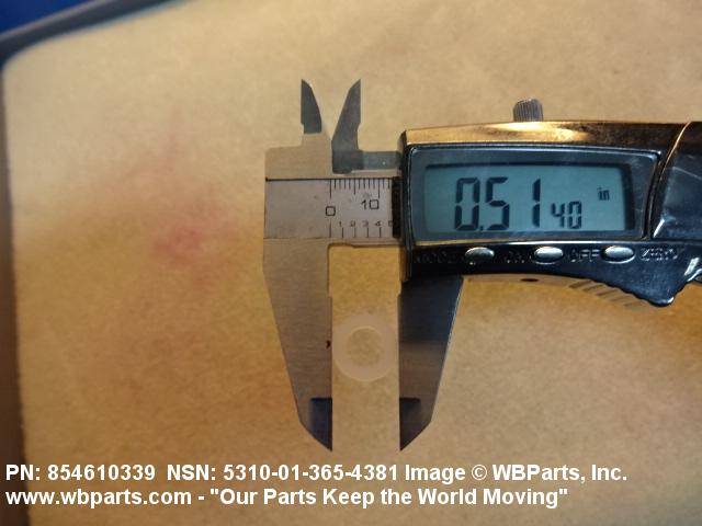 5310-01-365-4381 A washer having a centrally located hole with a solid or laminated cross-section and two flat parallel bearing surfaces. The hole must be 75 percent or less than the largest dimension and the bearing surface finish is greater than 32 microinch (0.8 micrometer). The thickness cannot exceed 25 percent of the largest outside dimension. When the largest outside dimension is less than 1/4 inch or 6mm, the thickness must be 0.006 inches (0.15mm) or greater and for items 1/4 inch (6mm) or larger, the thickness must be 0.016 inches (0.4mm) or greater. The maximum tolerance is applied to dimensions and used as a determining factor. Items with separable lamination use SHIM. For items fabricated from ceramic or electrically rated materials by specification or industry standards use INSULATOR (1), WASHER. Excludes DISK, VALVE, graphite impregnated and lubricated items.