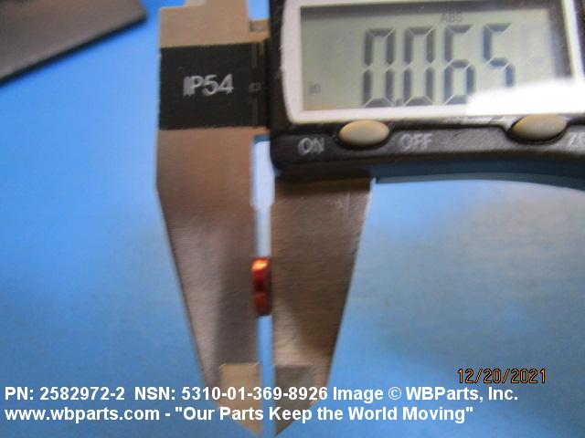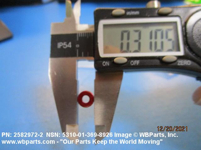5310-01-369-8926 A washer having a centrally located hole with a solid or laminated cross-section and two flat parallel bearing surfaces. The hole must be 75 percent or less than the largest dimension and the bearing surface finish is greater than 32 microinch (0.8 micrometer). The thickness cannot exceed 25 percent of the largest outside dimension. When the largest outside dimension is less than 1/4 inch or 6mm, the thickness must be 0.006 inches (0.15mm) or greater and for items 1/4 inch (6mm) or larger, the thickness must be 0.016 inches (0.4mm) or greater. The maximum tolerance is applied to dimensions and used as a determining factor. Items with separable lamination use SHIM. For items fabricated from ceramic or electrically rated materials by specification or industry standards use INSULATOR (1), WASHER. Excludes DISK, VALVE, graphite impregnated and lubricated items.