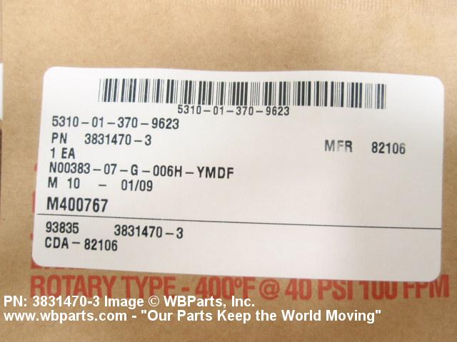Part Alternates: 38314703, 3831470-3, 5310-01-370-9623, 01-370-9623, 5310013709623, 013709623