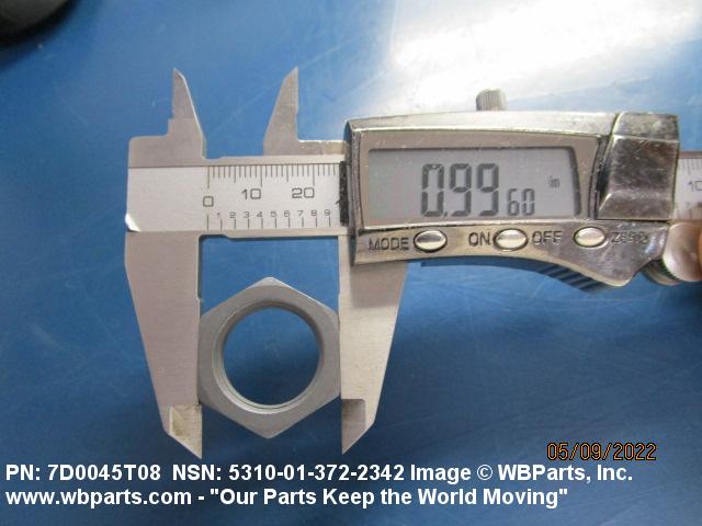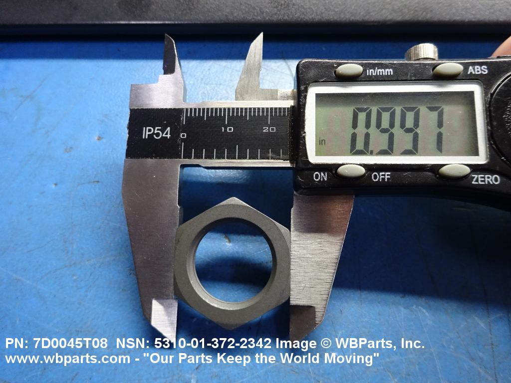 5310-01-372-2342 A nut, flat on top and bottom having 6 flat sides. For items which have internal tapered or straight (parallel) pipe threads, specific electrical conduit size designation, and which when installed, provide a method of tightening to lock the connection, see LOCKNUT, ELECTRICAL CONDUIT. See also LOCKNUT, TUBE FITTING. For items having a thickness (or height) exceeding two times the width across the flats, use POST, ELECTRICAL-MECHANICAL EQUIPMENT. (When height or thickness and/or width across the flats is designated as a tolerance dimension, the maximum dimension will be used to determine compliance.