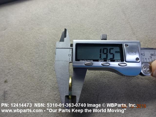 5310-01-374-6990 A washer having a centrally located hole with a solid or laminated cross-section and two flat parallel bearing surfaces. The hole must be 75 percent or less than the largest dimension and the bearing surface finish is greater than 32 microinch (0.8 micrometer). The thickness cannot exceed 25 percent of the largest outside dimension. When the largest outside dimension is less than 1/4 inch or 6mm, the thickness must be 0.006 inches (0.15mm) or greater and for items 1/4 inch (6mm) or larger, the thickness must be 0.016 inches (0.4mm) or greater. The maximum tolerance is applied to dimensions and used as a determining factor. Items with separable lamination use SHIM. For items fabricated from ceramic or electrically rated materials by specification or industry standards use INSULATOR (1), WASHER. Excludes DISK, VALVE, graphite impregnated and lubricated items.