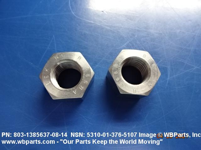 5310-01-376-5107 A nut, flat on top and bottom having 6 flat sides. For items which have internal tapered or straight (parallel) pipe threads, specific electrical conduit size designation, and which when installed, provide a method of tightening to lock the connection, see LOCKNUT, ELECTRICAL CONDUIT. See also LOCKNUT, TUBE FITTING. For items having a thickness (or height) exceeding two times the width across the flats, use POST, ELECTRICAL-MECHANICAL EQUIPMENT. (When height or thickness and/or width across the flats is designated as a tolerance dimension, the maximum dimension will be used to determine compliance.