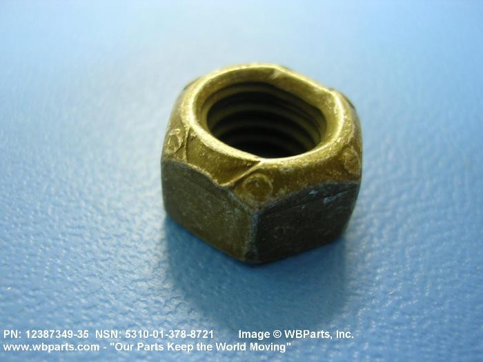5310-01-378-8721 A nut having a flat bottom and 6 sides. An integral feature is incorporated for locking on the threads of a mating member. Excludes NUT (1), SELF-LOCKING, CAP.