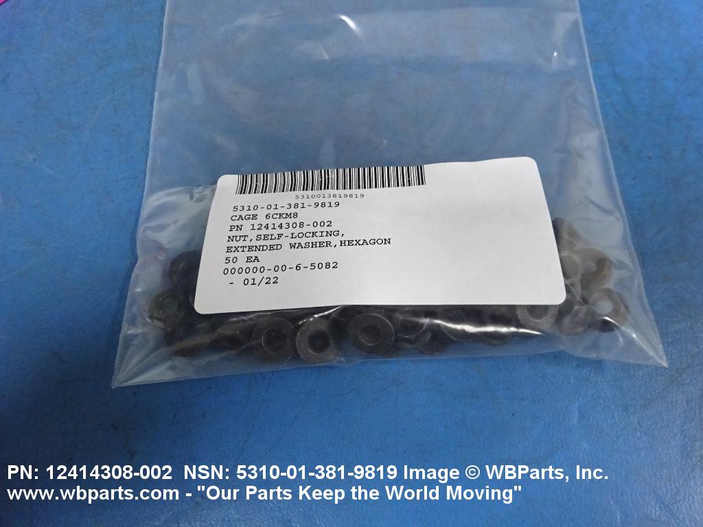 5310-01-381-9819 A nut having 6 flat sides and an integral washer which extends beyond the flats or periphery. An integral feature is incorporated for locking on the threads of a mating member.