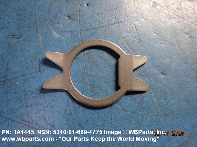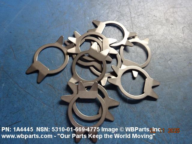 5310-01-388-0454 A washer of nonresilient material usually having two parallel bearing surfaces. The outside and/or inside edges have one or more protuberances. The ends and/or edges may be prebent at any angle or the protuberances may be prebent at any angle to the bearing surfaces. The keys or lugs may be fitted into keyways in adjacent material or they may be bent over after application to hold or lock one or more items in place. Excludes thrust type washer.