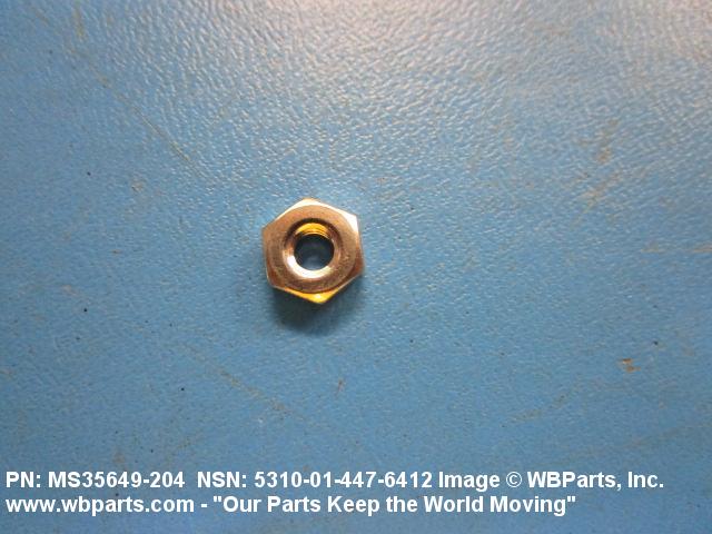5310-01-447-6412 A nut, flat on top and bottom having 6 flat sides. For items which have internal tapered or straight (parallel) pipe threads, specific electrical conduit size designation, and which when installed, provide a method of tightening to lock the connection, see LOCKNUT, ELECTRICAL CONDUIT. See also LOCKNUT, TUBE FITTING. For items having a thickness (or height) exceeding two times the width across the flats, use POST, ELECTRICAL-MECHANICAL EQUIPMENT. (When height or thickness and/or width across the flats is designated as a tolerance dimension, the maximum dimension will be used to determine compliance.